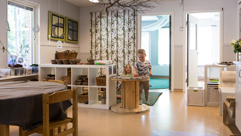 Lärmiljöerna och materialen inbjuder till ett utforskande och lärande som lockar fram deras kreativitet och fantasi tillsammans med kompisar och pedagoger. I våra lärmiljöer finns det pedagogiska materialet tillgängligt för barnen för ett utforskande utifrån ett hela dagen perspektiv. Vi vill skapa möjligheter för barnen att utveckla sin nyfikenhet och känna tilltro till sin egen förmåga genom att utforska med alla sinnen.